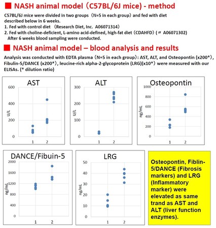 DANCE was identified as a ligand of integrins expressed mainly in arteries during embryogenesis and was named developmental arteries and neural crest EGF-like /DANCE. It is also called fibulin-5 and is a member of fibulin-family. Fibulin-5/DANCE is a secreted protein of 448 amino acids and 66kDa. It contains a RGD (arginine-glycine-asparticacid) motif in the N-terminal ragion and binds to integrins α5β1, αvβ3 and αvβ5. The expression of mRNA is augmented in smooth muscle cell, fibroblasts and endothelial cells of injured vascular tissues. Fibulin-5-deficient mice recapitulate human aging phenotypes, such as loose skin (cutis laxa), emphysematous lungs, and stiff ateries. It is known that destruction and degradation of elastic fibers directly cause many aging-related disorders like these. Disorganized elastic fibers were observed in the fibulin-5-deficient mice and indicating that fibulin-5/DANCE is an essential protein for elastogenesis. This product is an ELISA kit wich can measure human fibulin-5/DANCE.